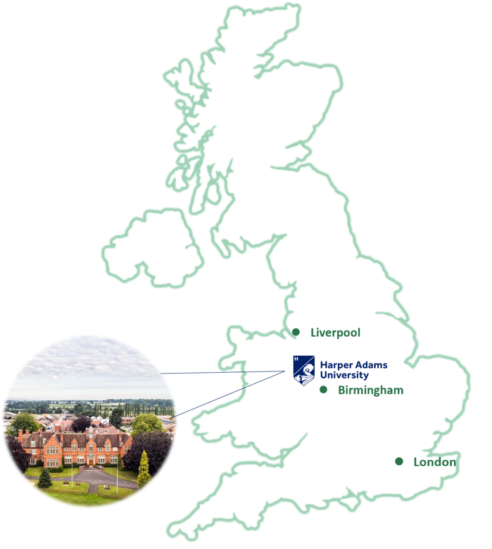 哈珀·亚当斯大学(Harper Adams University)成立于1901年,是英国农业农村经济与食品领域最大的高等院校,多年来因其优质的教育教学、应用研究,紧密的业内联系与合作,以及高效的知识成果转化受到国际广泛认可。学校现名誉校长为英国的安妮公主殿下。所授专业涉及农业生产,商务管理,食品供应链,机械工程(包括精准农业),环境管理,数据科学,兽医,以及动物健康和福利等。所有学科均倡导可持续发展的商业理念和科学理论。