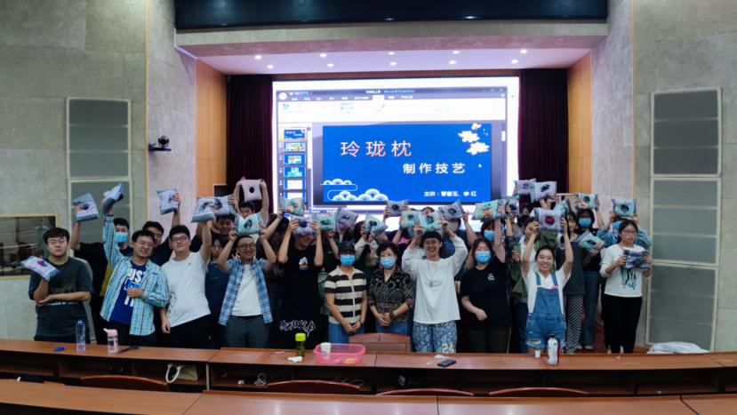 “玲珑枕”又称“耳枕”,顾名思义,就是能让耳朵舒适的枕头。在枕头的六面各留一个孔,侧身睡时耳朵刚好可以放在里面不会被挤压,通风透气性好。填充物清凉下火的黑苦荞壳做枕芯,柔软舒适的同时又可以起到保健作用。在《拼布艺术玲珑枕》的课堂上,老师为同学们不仅介绍了“玲珑枕”的由来和保健功效,并手把手的带领学生一针一线拼接缝制玲珑枕。
