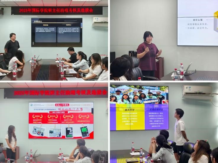 实验员张莉,辅导员贾博文、张胤瑄等老师组成评委团,多维度考核、选拔班助。