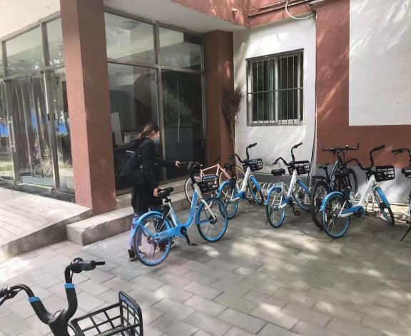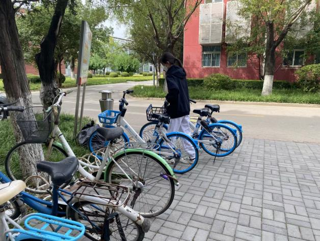 入党积极分子们两两结成一组,分别在教学楼A座、教学楼B座、行政楼、生资楼、 一食堂、二食堂、大学生活动中心、科技楼、图书馆、乐鱼楼、文法楼以及园林楼周围,对共享单车进行位置调整,合理摆放。