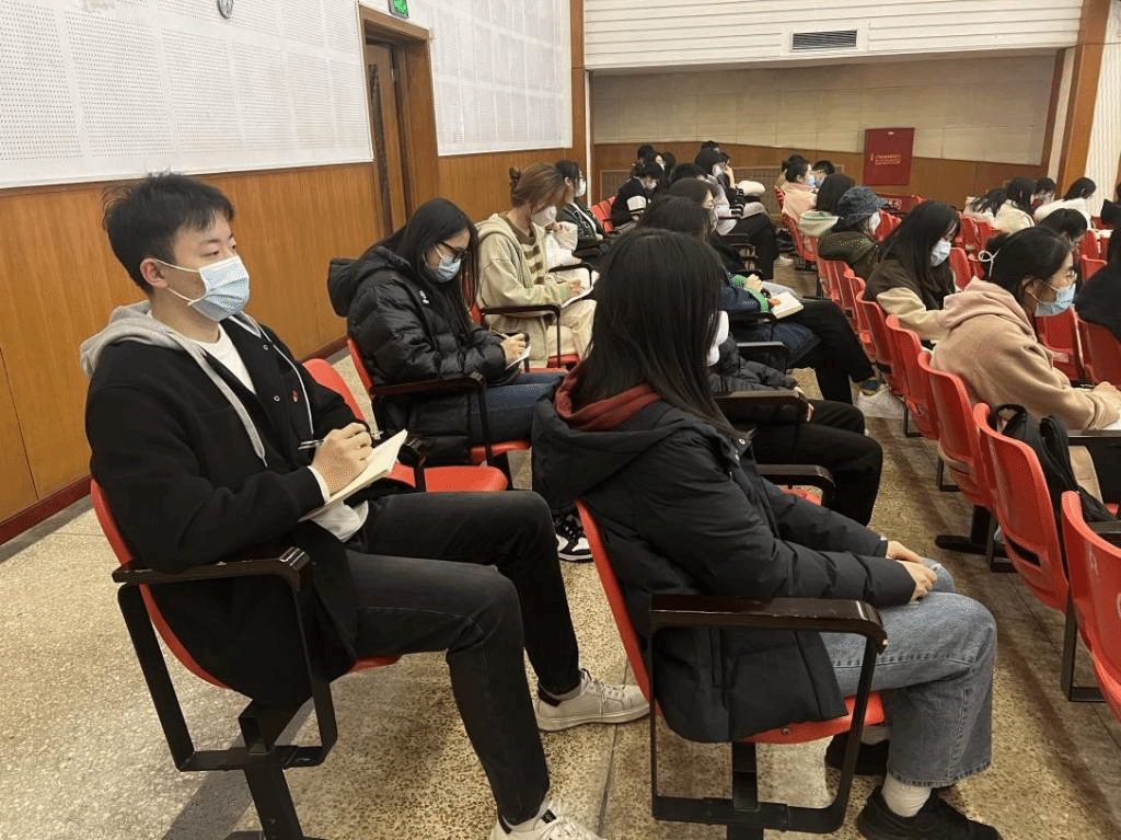 组织学生党员、积极分子分别在大礼堂及教室学习党的二十大精神辅导报告。