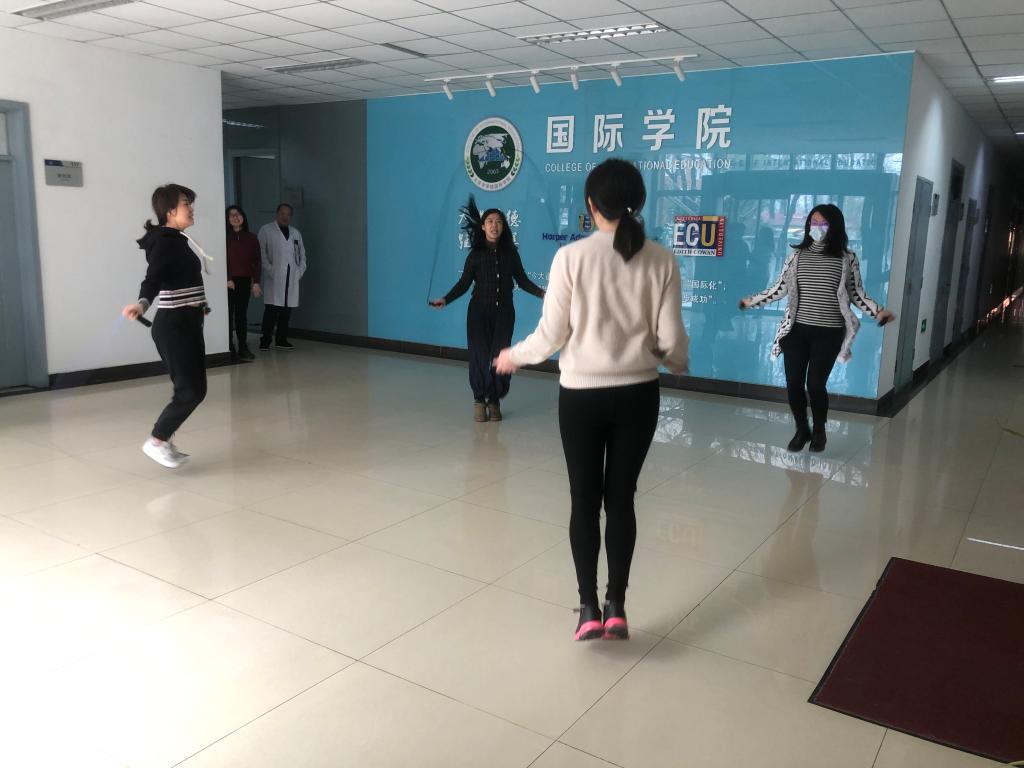 为丰富教工业余生活,提高教工锻炼身体的积极性,并达到强身健体的效果,2022年3月30日中午,乐鱼博彩 /国际合作与交流处分工会在乐鱼楼一层举行了教工跳绳比赛。
