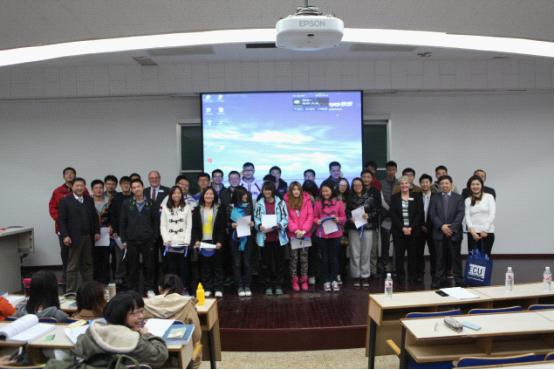 新楼一层阶梯教室对澳洲全体学生进行了关于项目介绍的讲座,并对大一新生颁发了Conditional offer(有条件录取通知书)。随后, 中澳项目教学秘书侯茂书带领澳方参观了校园。下午2点,澳洲代表团在乐鱼博彩