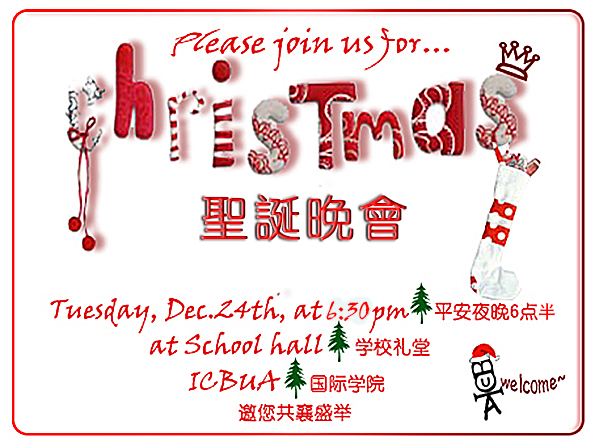 Today we take as a special pleasure to invite you to participate inour Christmas party and welcome to the New Year. We wish that we could share this celebration with you.