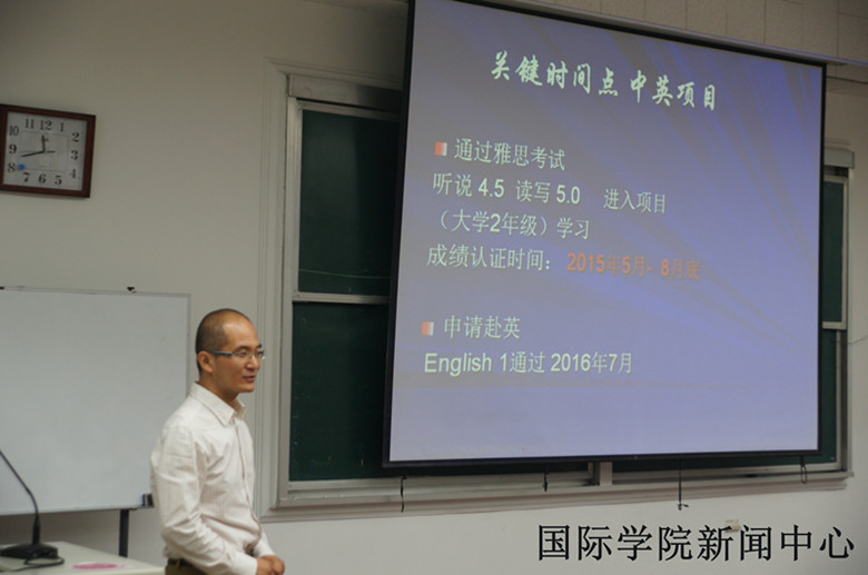 的教学特色、管理体系、以及教育理念等内容。通过十余年的合作办学经验,我院已成为具备良好口碑的中外办学机构,并沉淀形成了乐鱼特色,即:与国外合作紧密,管理、运行、考核均与国际接轨,严格、严谨的管理体系,国外教育理念的全方位渗透,以及更为开放的学术交流氛围;作为英语主管,李宁老师强调了大一同学雅思学习的一些具体情况;作为新生辅导员朱涛老师希望家长能够与老师的立场一致,并尽自己最大的努力帮助同学,明确目标。