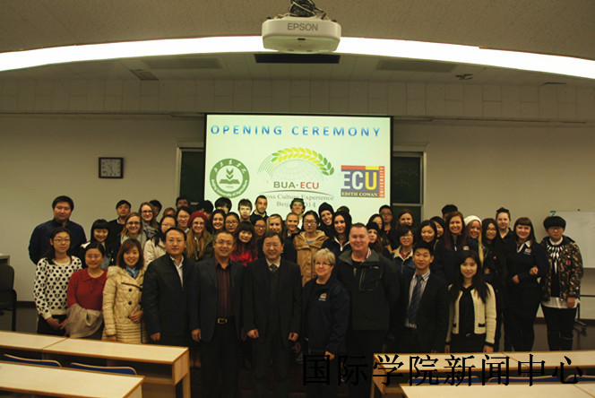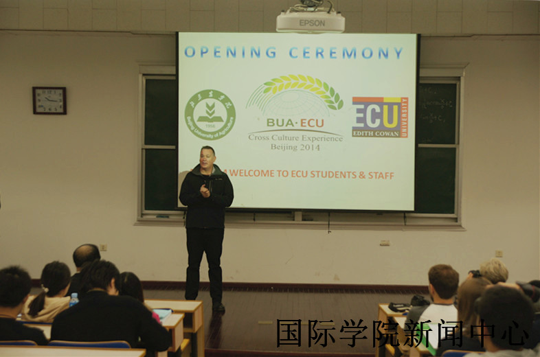 党总支书记谭锋老师首先向交换生表示由衷地欢迎。谭锋书记特意讲述了此次班徽的寓意,希望两校的合作顺利,希望双方的学生都能在合作中受益,并预祝每位学生在未来的两周交换生活中能够学如所愿。澳大利亚ECU课程管理负责人David Blake在开班仪式上指出,BUA和ECU之间的合作是牢固的,他对两校间初次的交换生项目充满信心和期待。