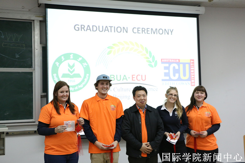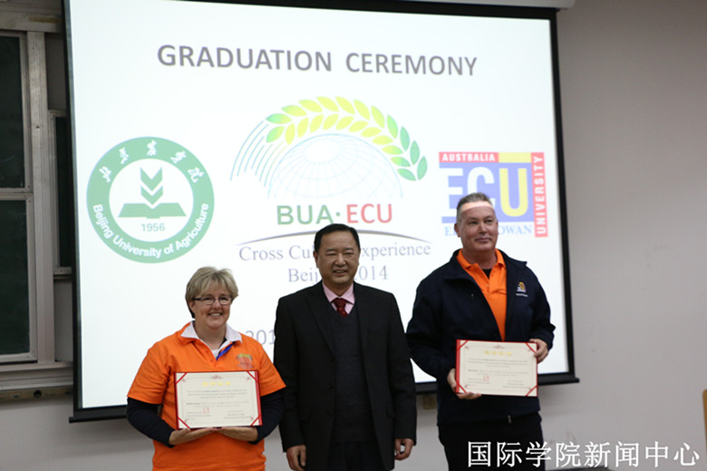 On the ceremony, Hou Maoshu has summarized the progress of the program. Dr. David Blade showed the photos from himself about this two weeks experience, and gave the thanks on behalf of ECU group for holding such a great programme. After that, Prof. Tan stated that this program was valuable and fruitful, and it enhanced the relationship between BUA and ECU. In addition, he speaks highly of the students who were at the program. And then, he awarded the certificate of graduation from the programme to the students. Finally, Prof. Zhang gave a short speech to congratulate the students and gave thanks to the effort of all students. Then he provided themwith gifts and best wishes. At last, the teachers from both universities exchanged the gifts, and thanked each other.
