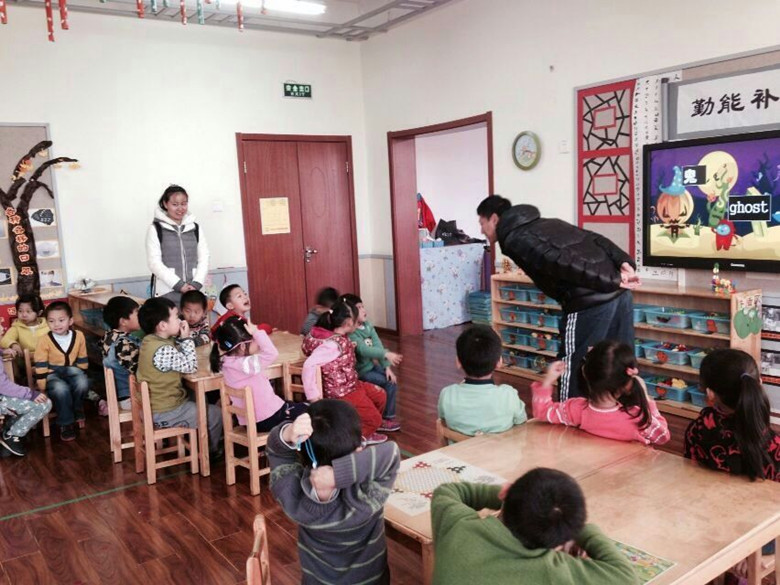 First of all, Volunteers played a video which is about Halloween to let the children get some information about a special festival. All of the children watched it delightfully. Secondly, Volunteers decorated the classrooms with lots of pumpkins’ toys which stands for Halloween Holiday and taught them how to draw some pumpkins. Everyone enjoyed themselves during this event. Volunteers not only taught them knowledge, but also spread the happiness to the children on a cold afternoon. We tried to make a relaxing atmosphere to cultivate children’s artistic sentiment.