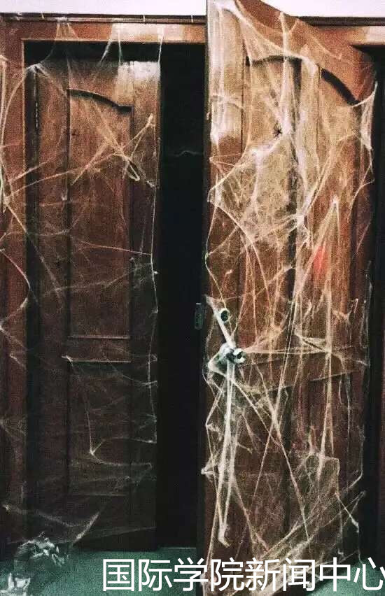 在“主题鬼屋试胆寻宝”活动中,胆大的参与者们结成小组,进入经过一番“乔装打扮”成废弃房子的阶二教室,并按照提示,在“鬼屋”中寻找“宝藏”。打开布满破旧蜘蛛网的大门,乐鱼博彩