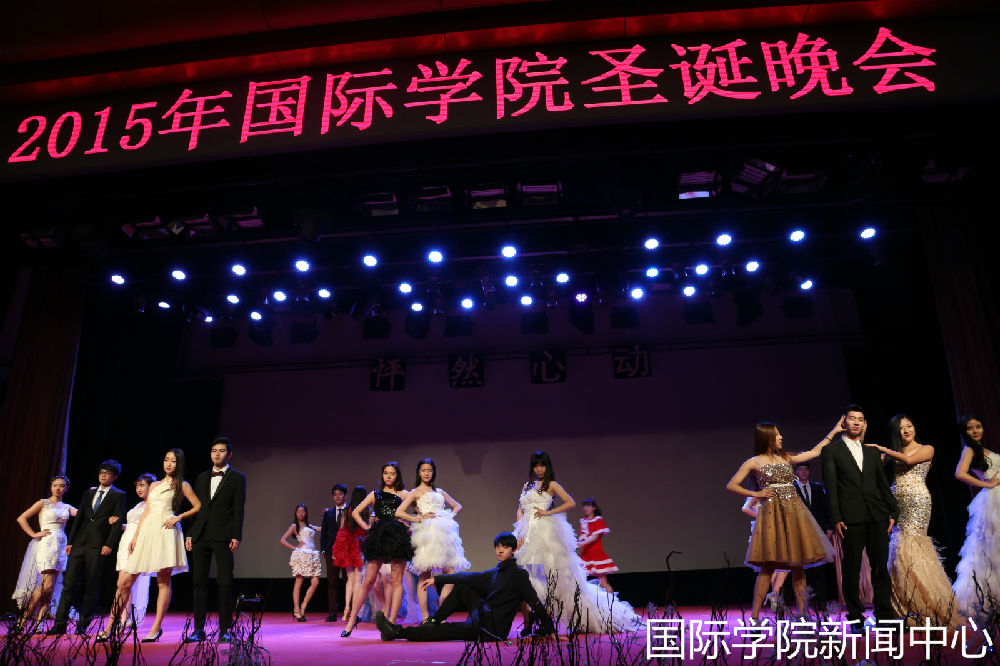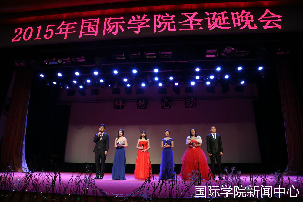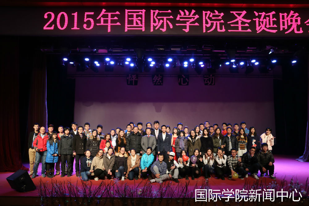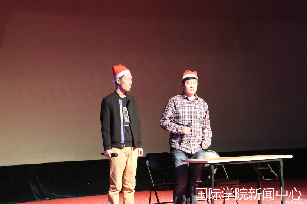 的老师和同学们相约共度平安夜。In the evening of 24th December of 2015, a Christmas party as well as the welcoming party was held in the auditorium by the Students’ Union of the International College. Students and teachers from the BUA attend this party.
