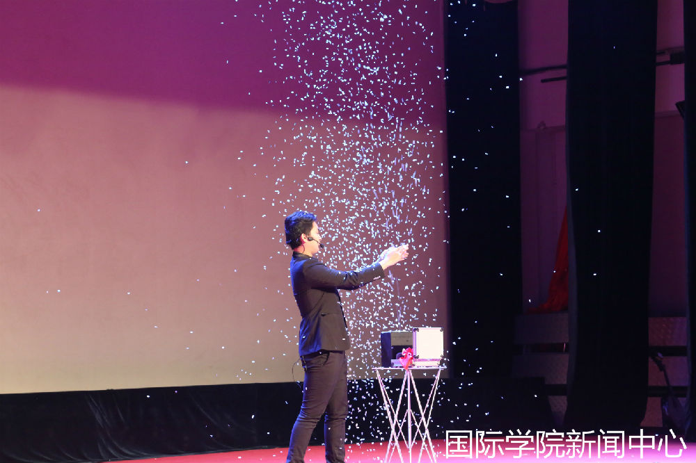的魔术师风趣幽默,用各种简单的道具完成了一场精彩的表演,赢得了全场的惊叹。