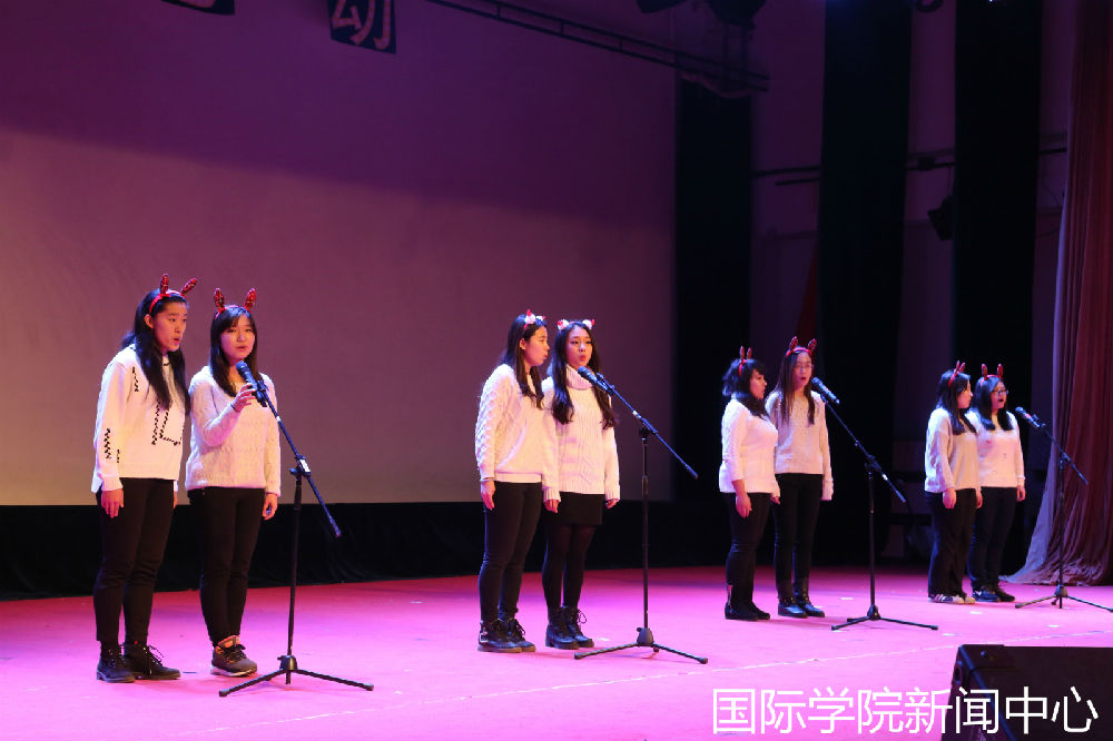 The perfect performances wen on shortly afterwards. The dance WeFengTangTang brought the evening party to a fiery atmosphere. Then a song Rage and Roar made every one there exciting. . The choir sang a song about The first noel and reverently praise the origin of Christmas, so Christmas atmosphere more rich.