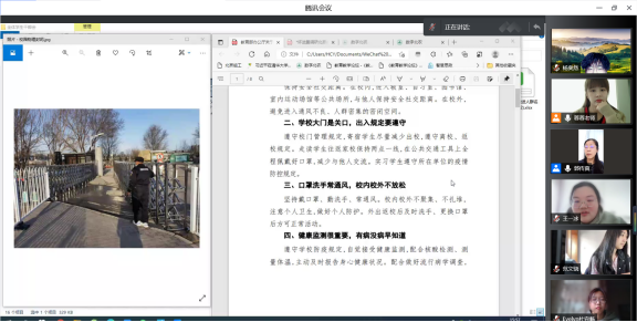 大会第一项,霍春艳首先就近期各班班会所反映的问题进行了反馈,并围绕学风建设,对学校当下发生的一些显著变化向线上学习的同学们进行了介绍。之后,带领全体学生骨干学习了《教育部办公厅关于学生疫情防控期间学习生活健康指南的通知》、《怀进鹏调研北京教育系统疫情防控工作》两个文件,并进行了详尽的政策解读。最后霍春艳重点强调了疫情当下,同学们居家过程中的自我防护问题、心理问题,并再次强调了健康打卡和疫苗接种的重要性和必要性。