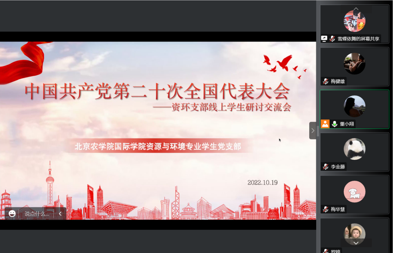 资源与环境党支部全体党员围绕习近平总书记在中国共产党第二十次全国代表大会上所作的报告深入开展学习讨论。会议由党支部党员李金藤、潘彦霖同志主持。