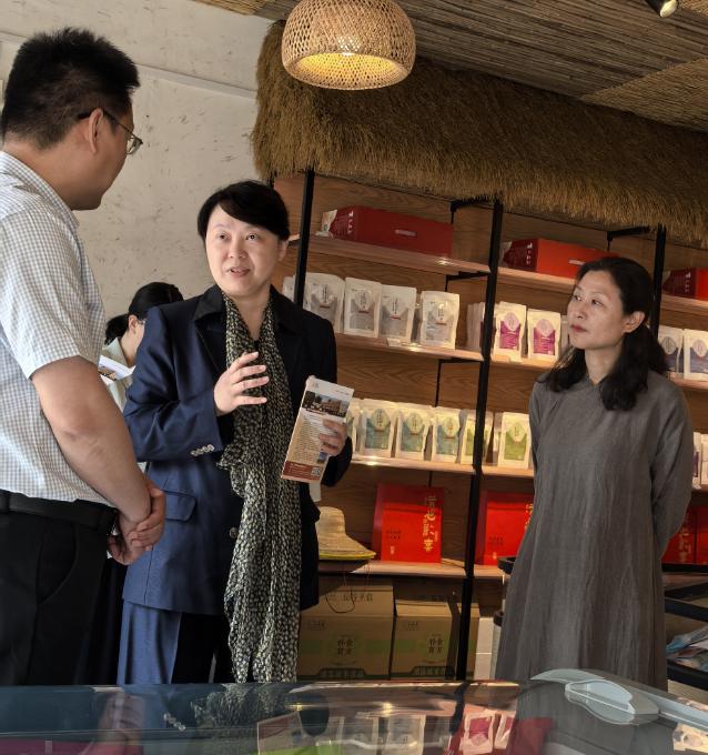 三益真食品有限公司总经理、三益祥食育书院院长刘时存,三益真食品有限公司副总经理周心信、杨安树带领武艳一行实地探访了智能化速冻主食生产线与三益祥食育书院,直观感受企业“产业+文化”双轮驱动的发展模式。