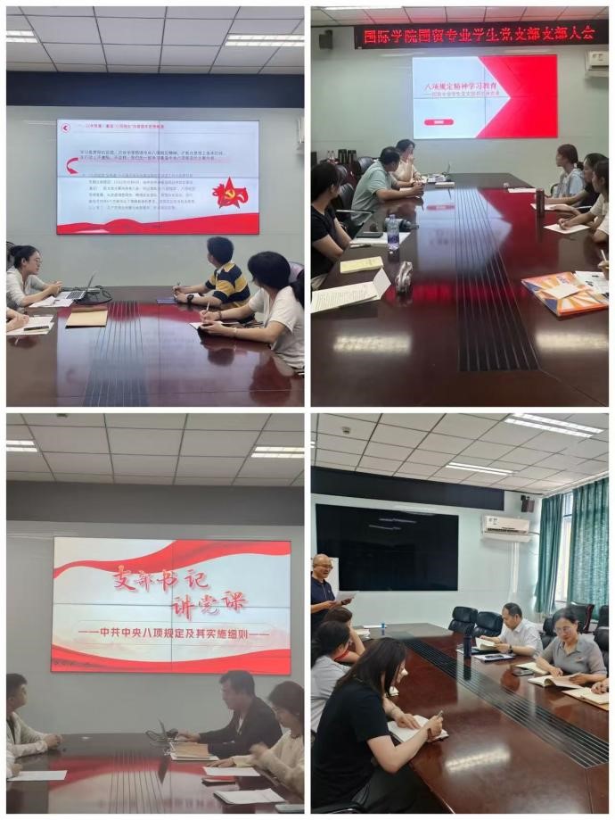 领导班子成员、师生党支部书记等分别面向大三离校出国党员、支部成员讲授专题党课,教育引导师生党员通过加强理论学习、强化实践行动,深入贯彻中央八项规定精神学习教育。