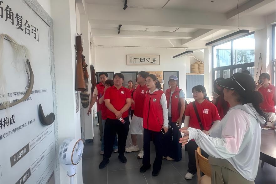 在村干部“刘姐”的带领下,实践团先后探访了清代龙王庙与年逾500的古榆树,触摸村庄的历史脉络;在箭杆岭弓坊,陈列的弓箭文物、传统制作工具与射箭体验区,让成员们沉浸式感受“百步穿杨”的文化魅力;错落有致的乡村民宿群与生机勃勃的共享菜园,则生动诠释了“精致乡村”的现代发展范式。